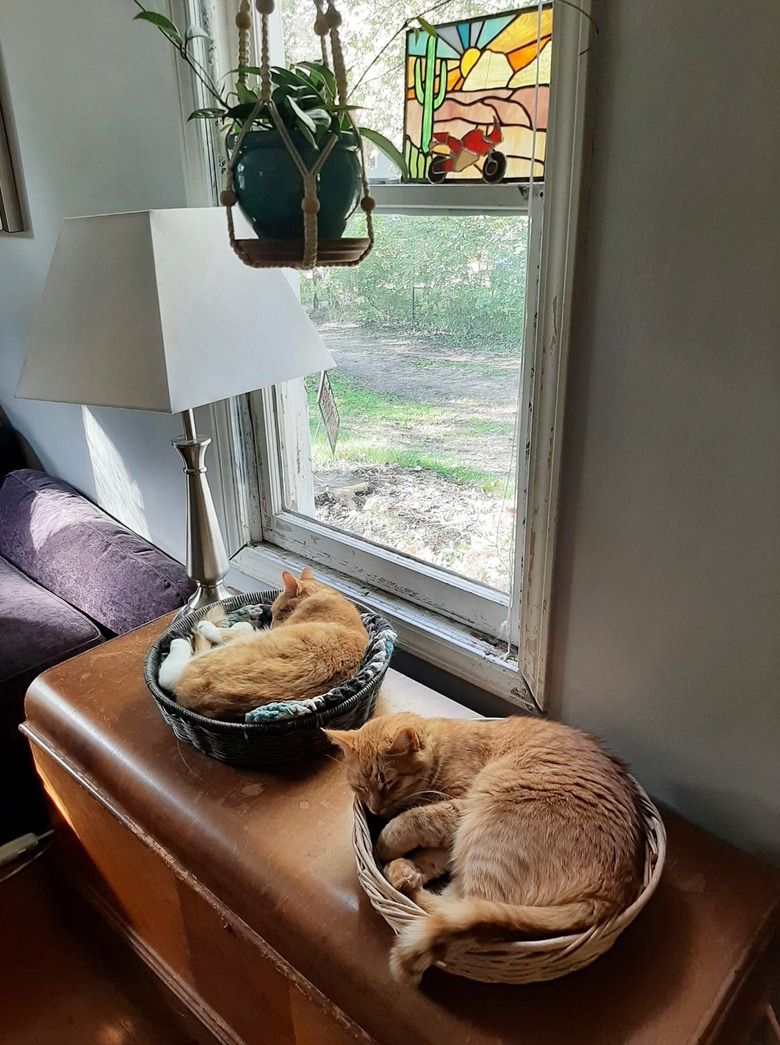 6. "Chimichanga (left) and Taco (right) can often be found in napping in their baskets."