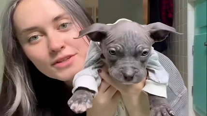 4-Pound Pit Bull Foster Puppy Wearing Pajamas For The First Time Is Too Cute For Words