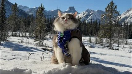 The fashionable feline's outdoor interests extend beyond winter sports. His TikTok and Instagram feeds also show him exploring the Canadian Rockies in warmer weather and hiking the trails and riding in boats with his owner, who jokingly refers to himself in captions as Gary's social media manager.