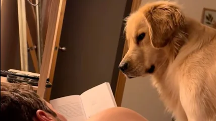 The dog stares intently at the father-to-be reading aloud about pregnancy topics such as cravings (including hamburger with condensed milk!) and body changes. "The way doggo sat forward when cravings and hamburgers were mentioned ... like hmmm what was that?" one viewer wrote. Another admitted, "This made me cry. The dog so invested. I cannot." Several people observed that the adorable pooch will make a wonderful sibling to the new baby. One commented, "The dog is supervising and learning at the same time." How sweet!