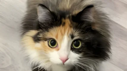 Fluffy Calico Cat's Painfully Cute Big Stretch Has Everyone Obsessed