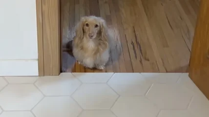 Sweetly overlayed with the Brenton Wood song "I Want Love" (but perhaps replace "love" with "cake") and the words "What's the thing that your dog has never forgotten? I fear I may have caused ours." The video creator then goes on to explain that it has been weeks since her dog enjoyed some cake at the dining room table, but now every night the little wiener dog just stands there while, awkwardly staring.