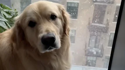 With the caption, "the biggest snow lover to exist," the goldie named Burrow is seen "begging" his owner to go out in the wintery wonderland seen from his city-view window, despite having already been outside. Of course, the longing looks directed back and forth between his owner and the outside world "worked," and he was able to once again frolic in the rooftop snow, all set to Taylor Swift's surreal song "Snow on the Beach."