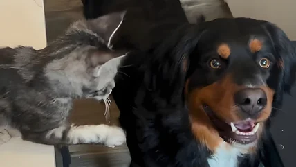 This Bernese Mountain Dog Mix Got A New Kitten Sibling And Didn't Even Realize It