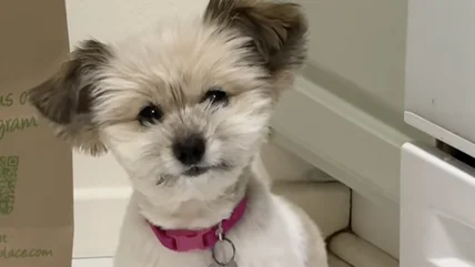 "My lil deaf dog LOVES a shared morning," the doggy mom declares as she tries to sit at the kitchen table while the shaggy pup makes it clear that cuddles are expected out in the living room. The pooch just stares, making a little "hmph" noise before her owner finally stands up, knowing the drill. "Chata is getting what she wants this morning!" the caption states, as the dog runs joyously into the other room, excitedly leading her mom to the perfect spot on the couch. It's all love in the end, with the dog mom noting that this is "my fav part of the day."