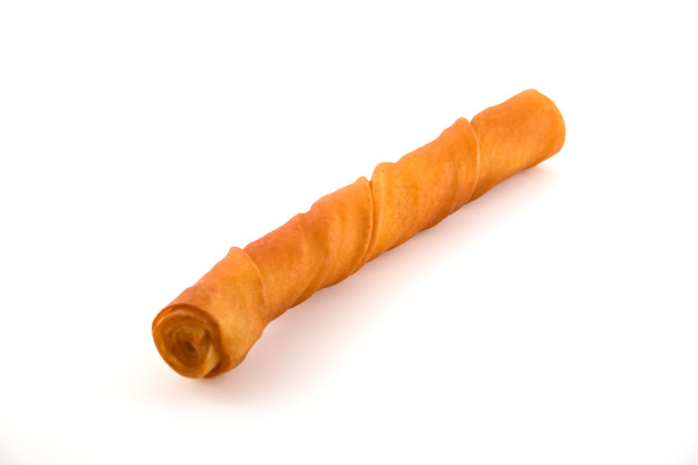 If you aren't sure about the fat content or choking hazard of rawhide, there are healthy homemade alternatives as well. Instead of using the hide, you can cut muscle meat from animals, such as chicken or turkey, into slices and dehydrate it in your oven or a dehydrator. To use your oven, set to 200 F and cook meat slices for two hours. For a vegetarian option, cook sliced sweet potatoes at 250 F for three hours.