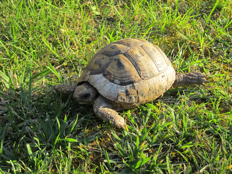 Tortoises thrive in outdoor enclosures where they have natural food to graze and plenty of places to hide. Plant edible bushes, flowers and vegetables to provide a variety of nutrition in a tortoise-safe enclosure.